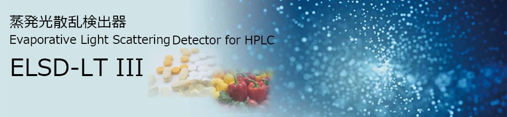 蒸発光散乱検出器(ELSD)は、糖質、脂質、界面活性剤、合成高分子など、UV吸収の無い成分の検出にも対応する汎用(ユニバーサル)検出器です。*